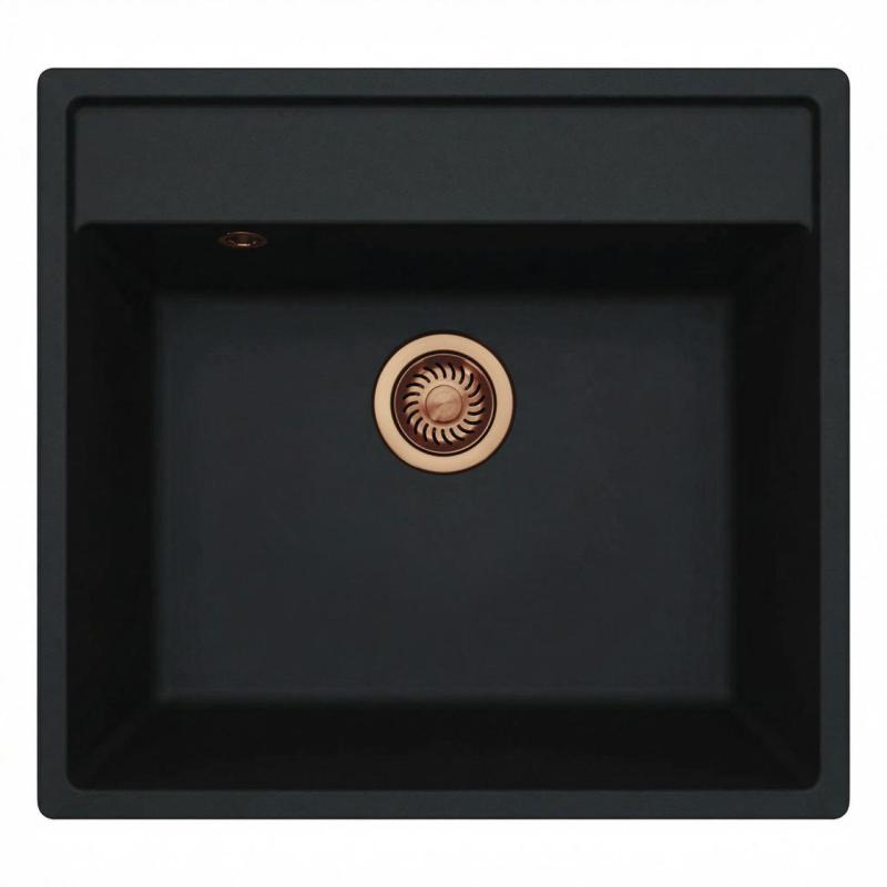 GraniteMy Bremen Granit Diskbänk 53x50 cm Svart - Ovanpåliggande, Undermonterad och Planmonterad med Kranhålsbänk och Kopparplugg 1208969970