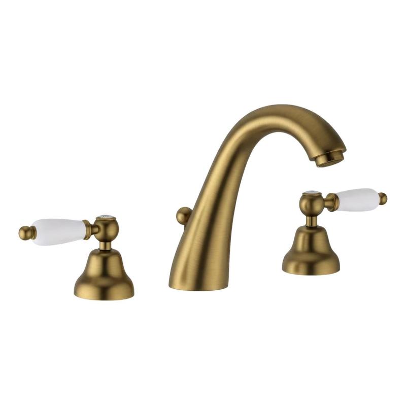 PB klassisk kran 3-håls hög tvättställsblandare Vita handtag Brons 1208956910