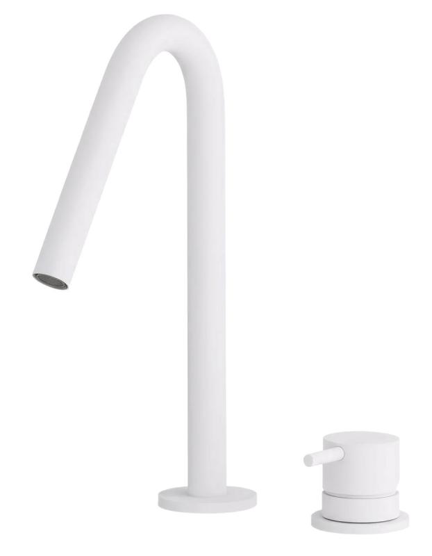 Waterevolution Flow 2-håls tvättställsblandare matt vit med liten V 120 mm utlopp T1121VBR