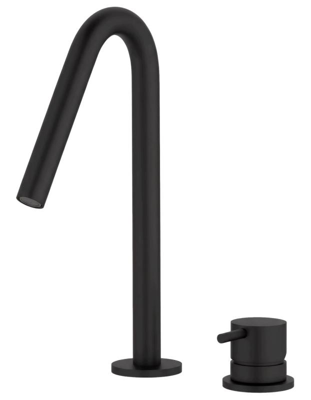 Waterevolution Flow 2-håls tvättställsblandare matt svart med liten V 120mm pip T1121VPR