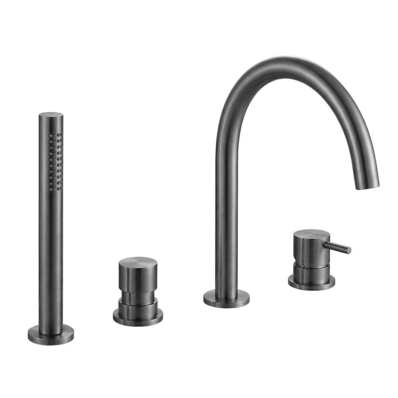 Waterevolution Flow 4-håls Badkran för Badkarskantmontering helt i PVD Gun Metal T138GME