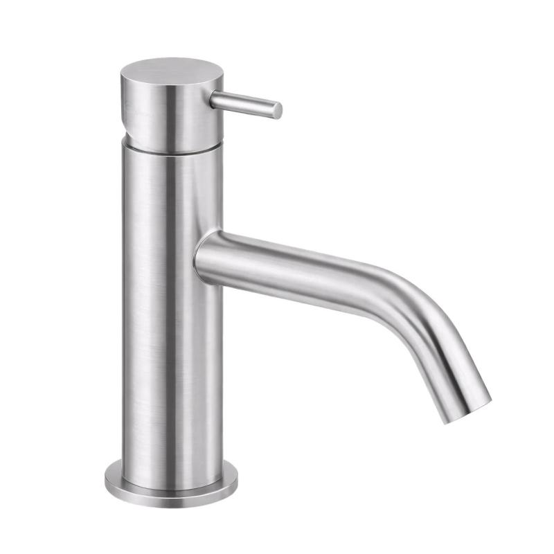 Uppgradera ditt badrum med den låga handfatblandaren i rostfritt stål T110IE frånWaterevolution Flow och upplev den perfekta balansen mellan stil och funktionalitet. Beställ nu och njut av den kvalitet och det hantverk som Waterevolution har att erbjuda.